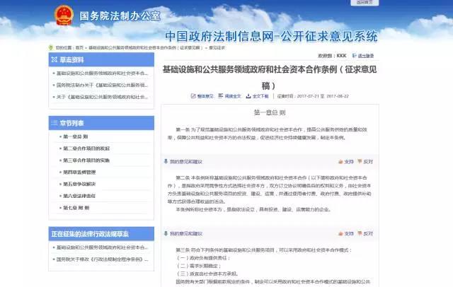 《基礎(chǔ)設(shè)施和公共服務(wù)領(lǐng)域政府和社會(huì)資本合作條例》(征求意見稿)
