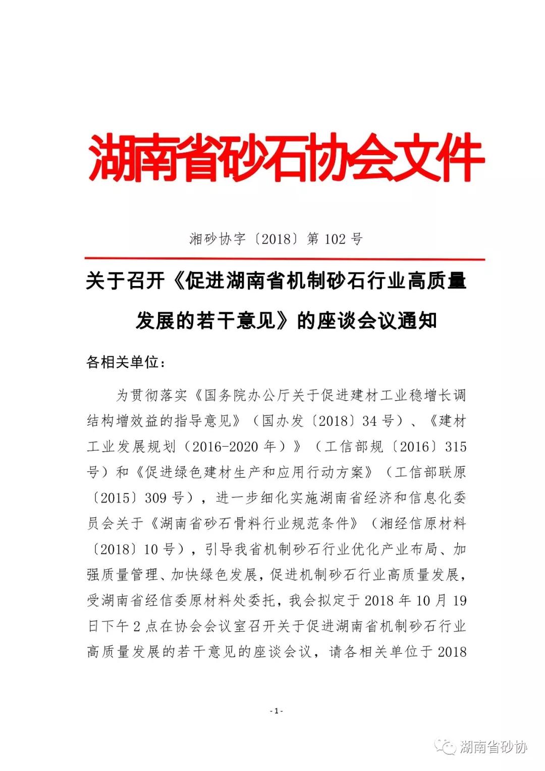 關于召開《促進湖南省機制砂石行業高質量發展的若干意見》的座談會議通知