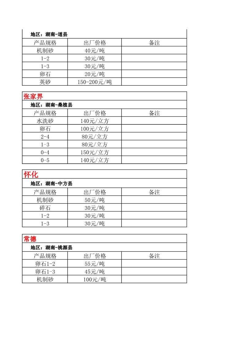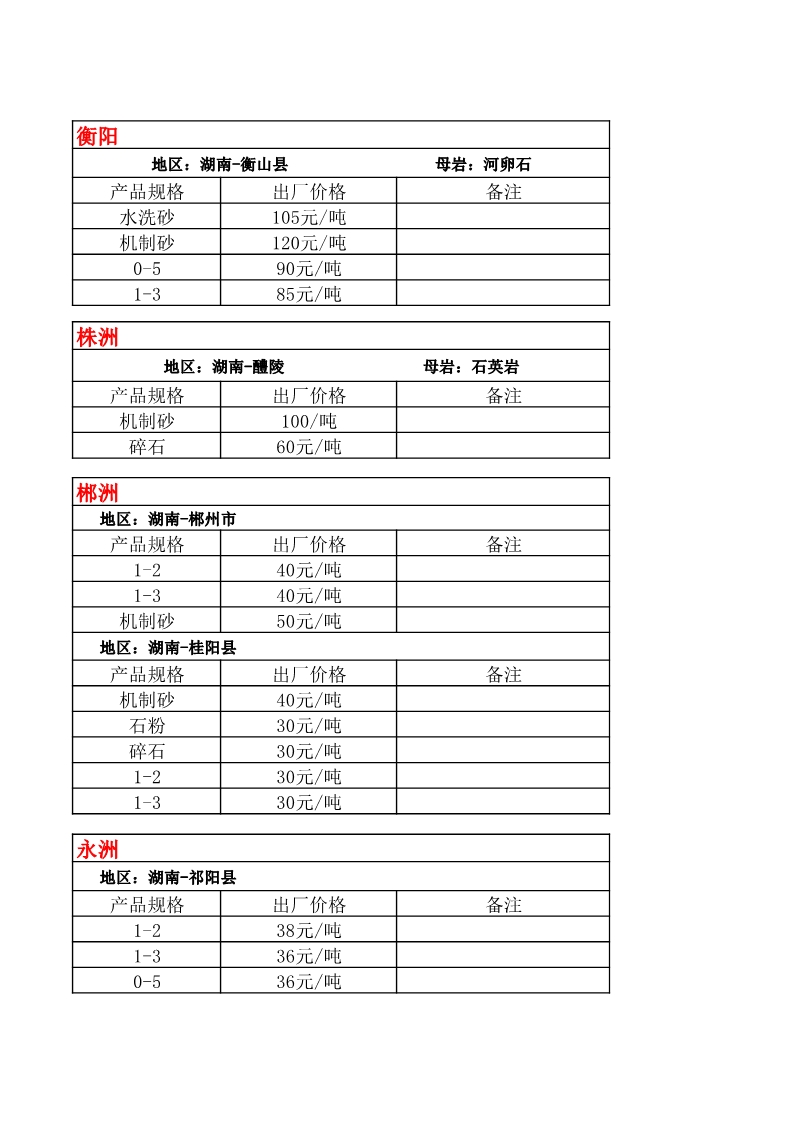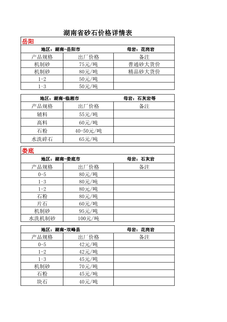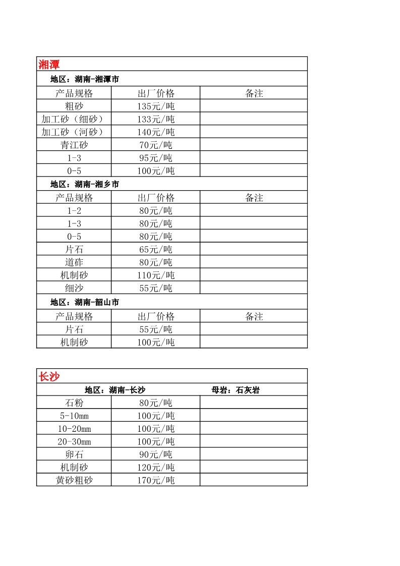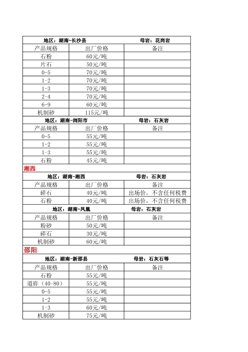 報價| 2018年11月湖南省各地州市砂石骨料產品在線報價信息