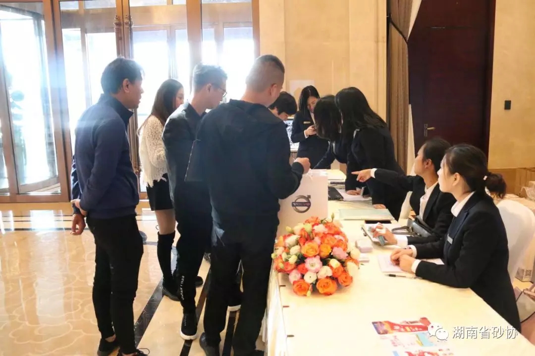 2018年11月23日,湖南省砂石協(xié)會在長沙市銅官窯新華聯(lián)麗景酒店舉行《2018年湖南省砂石行業(yè)綠色高質量發(fā)展峰會暨湖南省砂石協(xié)會會員代表大會》的簽到工作。此次湖南省砂石行業(yè)綠色高質量發(fā)展峰會將于11月24日在長沙市銅官窯新華聯(lián)麗景酒店正式召開。
