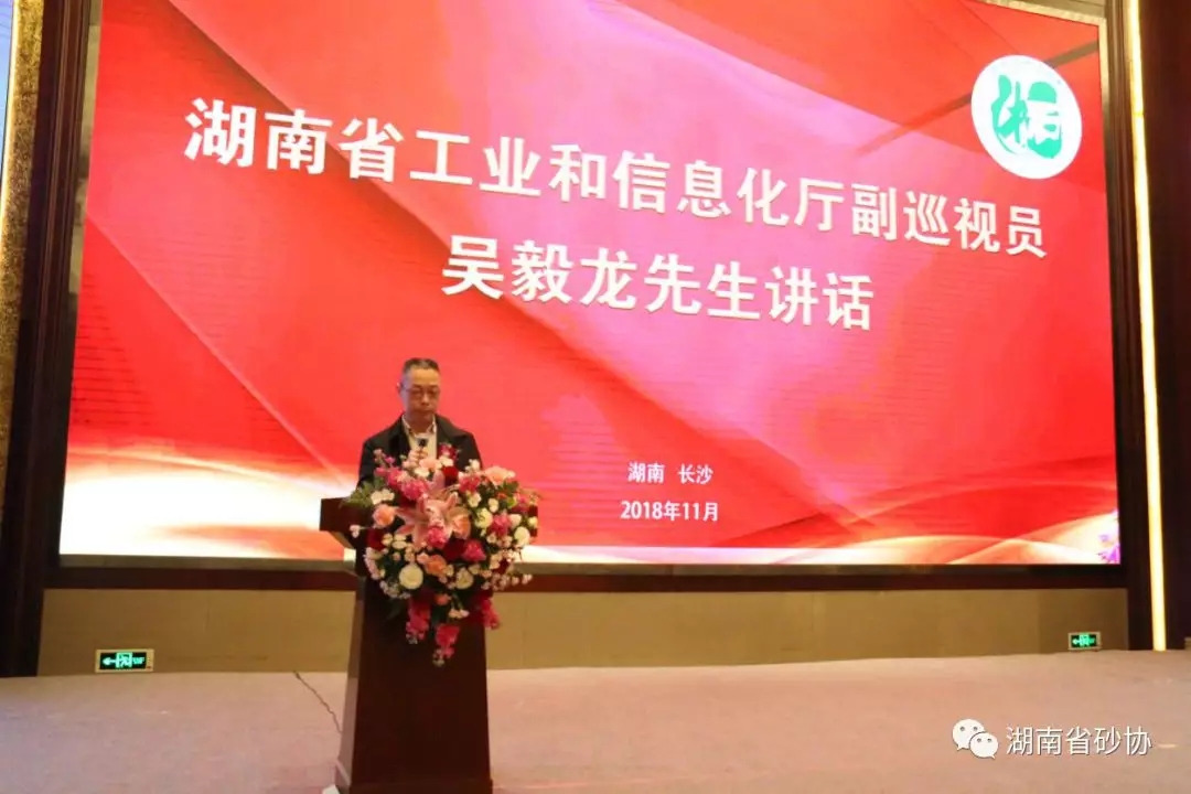 湖南省工業和信息化廳副巡視員吳毅龍先生在致辭中表示:湖南省砂石協會自成立以來,為促進我省砂石骨料行業的快速發展做了大量有成效的工作,得到了有關部門和企業的高度認可。并期望湖南省砂石協會進一步強化自身建設,凝聚全行業才智,充分發揮專家的智囊作用,不斷提升服務能力,當好政府部門的參謀和助手,繼續為我省砂石企業提供優質服務,積極推廣應用新技術、新設備和新產品,引領砂石骨料行業綠色環保和高質量發展。