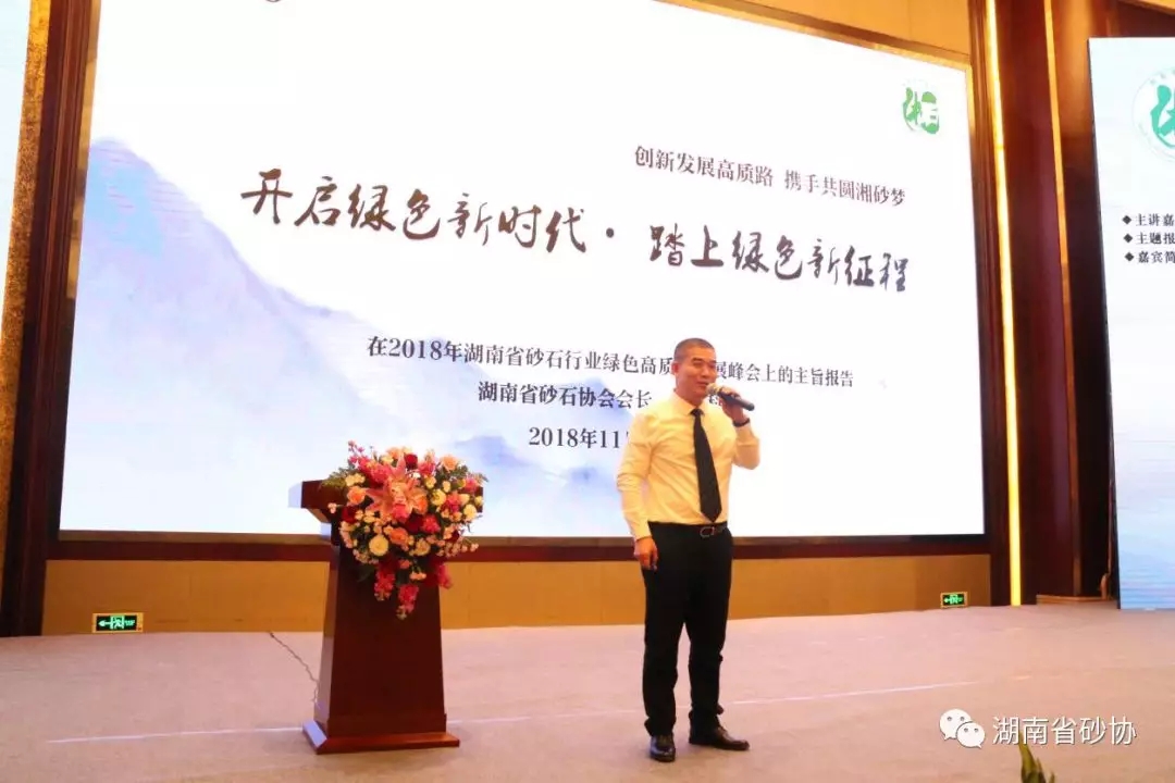 湖南省砂石協會會長李建科作了《2018—開啟綠色新時代·踏上綠色新征程》的主旨報告。