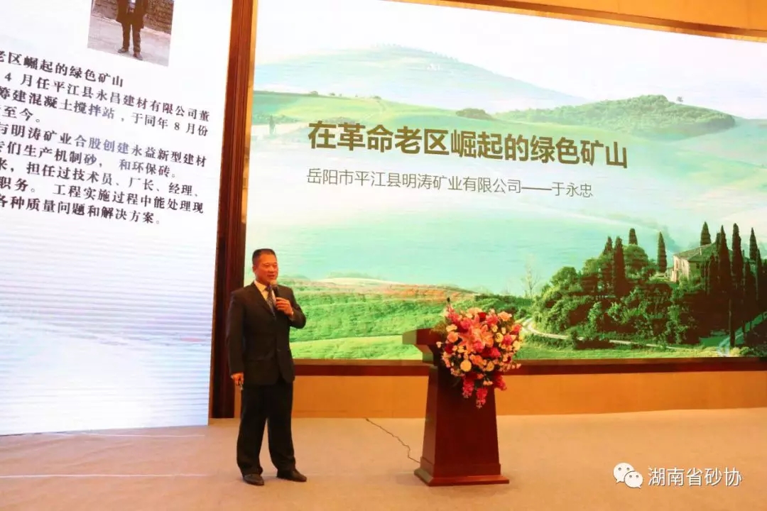 湖南省平江縣明濤礦業有限公司董事長于永忠作了《在革命老區崛起的綠色礦山》的報告。于董重點介紹了位于湖南省平江縣正在打造的第一座綠色礦山——明濤礦業的總體規劃和建設情況。從得天獨厚的良基,嚴格規范的建設進程,立足感恩的未來愿景和個人的心得感悟方面闡述了明濤礦業的發展歷程和未來規劃。