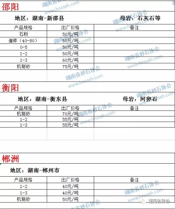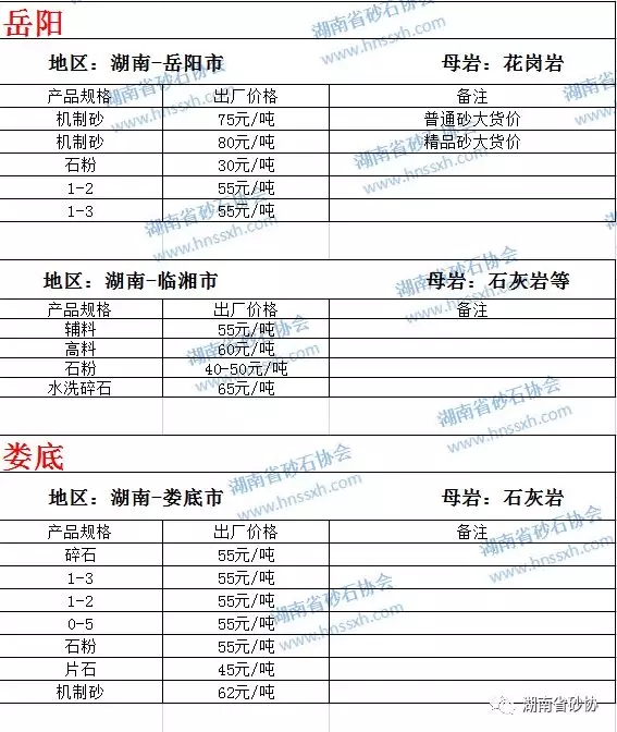 2019年2月湖南省各地州市砂石骨料產(chǎn)品在線報(bào)價信息 發(fā)布日期:2019-02-20 03:47:29 點(diǎn)擊量:1 標(biāo)簽:新聞中心 文字編輯/聶云川圖文校對/歐陽瓊責(zé)任編輯/李欣桐
